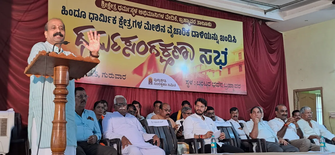 ಶ್ರೀ ಕ್ಷೇತ್ರ ಧರ್ಮಸ್ಥಳ ಅಭಿಮಾನಿಗಳ ವೇದಿಕೆ ಬ್ರಹ್ಮಾವರ ತಾಲೂಕು ವತಿಯಿಂದ ಹಿಂದೂ ಧಾರ್ಮಿಕ ಕ್ಷೇತ್ರಗಳ ಮೇಲಿನ ವೈಚಾರಿಕ ದಾಳಿಯನ್ನು ಖಂಡಿಸಿ ಧರ್ಮ ಸಂರಕ್ಷಣಾ ಸಭೆ ಬ್ರಹ್ಮಾವರದ ಬಂಟರ ಭವನದಲ್ಲಿ ನಡೆಯಿತು.
