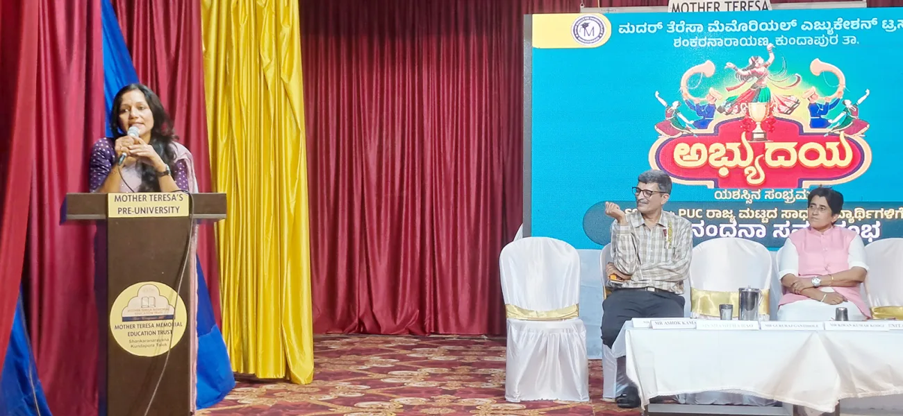 ಅವರು ಶಂಕರನಾರಾಯಣ ಮದರ್ ತೆರೆಸಾ ಮೆಮೋರಿಯಲ್ ಎಜ್ಯುಕೇಶನ್ ಟ್ರಸ್ಟ್ ವತಿಯಿಂದ ಮದರ್ ತೆರಸಾ ಶಾಲೆಯ ರೌಪ್ಯ ಸಭಾಂಗಣದಲ್ಲಿ ನಡೆದ ಅಭ್ಯುದಯ ವಿದ್ಯಾರ್ಥಿಗಳ ಅಭಿನಂದನಾ ಕಾರ್ಯಕ್ರಮ ಉದ್ಧೇಶಿಸಿ ಮಾತನಾಡಿದರು.